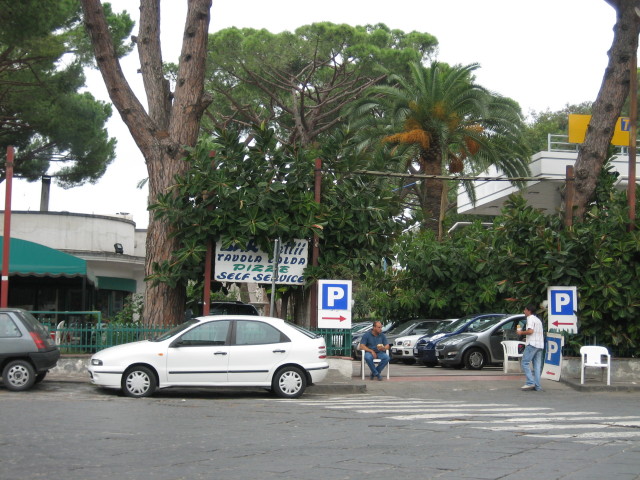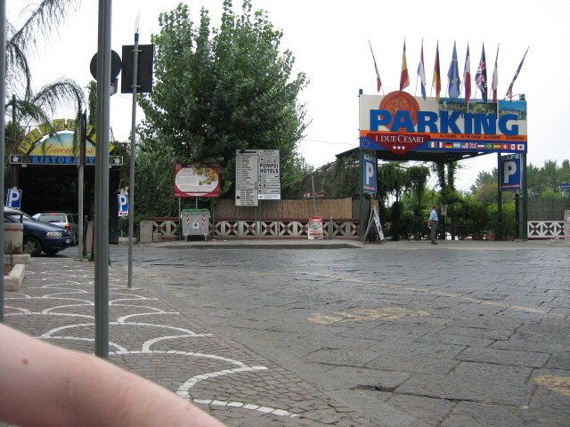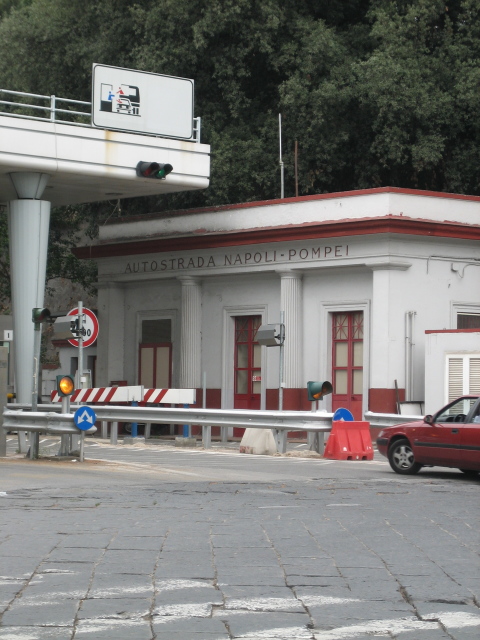 Turn right out of the station, towards the masses of water sellers/fruit sellers. You should be heading downhill and you will go past Pompeii entrance. After 200 metres from the station, you will arrive at a crossroads and the entrance to the motorway (Autostrada).