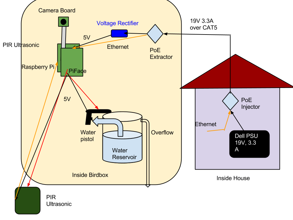 PiPoEGUSCA - RaspberryPi Power over Ethernet Garden Ultrasonic Squirter Camera Alarm